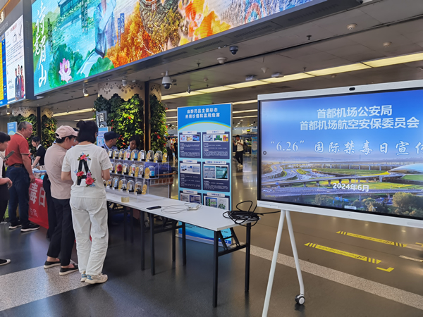 為積極踐行“平安中國”建設(shè)理念,扎實開展首都機場“平安民航”建設(shè),按照民航局、首都機場集團相關(guān)工作部署,近日,首都機場在2號、3號航站樓組織開展了國際禁毒日宣傳活動。本次活動由首都機場公安局主辦、首都機場航空安保委員會協(xié)辦。在活動中,公安青年民警與首都機場股份公司青年志愿者成立了聯(lián)合宣講隊,通過知識講解、樣品展示、宣傳冊發(fā)放、互動問答等多種形式,面向在首都機場出行的旅客和現(xiàn)場員工,全方位、深層次地普及禁毒知識,有效提高了廣大旅客和員工的識毒、防毒、拒毒能力,營造了“健康人生、無毒空港”的良好氛圍。(房志華 李郝攝影報道)