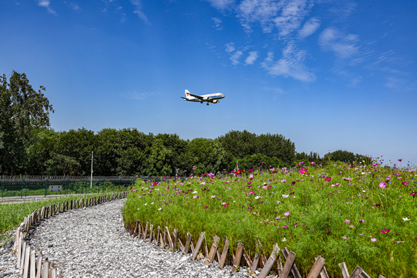 首都機(jī)場(chǎng)西跑道北端由北部土坡區(qū)、南部平整區(qū)以及排水明溝等區(qū)域構(gòu)成,總面積約3.3萬平方米。該區(qū)域原為渣土堆,堆放了較多建筑垃圾,容易吸引鳥類停留,環(huán)境治理難度較大。面臨種種挑戰(zhàn),首都機(jī)場(chǎng)飛行區(qū)管理部積極創(chuàng)新工作思路,以人工種植的草坪為基底,選擇4種—5種適合北方地區(qū)生長(zhǎng)且不吸引鳥類的草種整體分區(qū)種植,并搭配種植小面積波斯菊,在西跑道北端打造了一片花海。