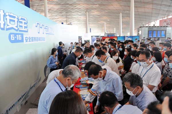 今年6月是第22個(gè)全國(guó)“安全生產(chǎn)月”,主題為“人人講安全、個(gè)個(gè)會(huì)應(yīng)急”。6月16日,全國(guó)“安全宣傳咨詢?nèi)铡碑?dāng)天,首都機(jī)場(chǎng)為進(jìn)一步增強(qiáng)公眾安全意識(shí),營(yíng)造濃厚的安全氛圍,圍繞“安全生產(chǎn)月”主題,在航站樓、飛行區(qū)組織開展了“安全宣傳咨詢?nèi)铡被顒?dòng),集中宣傳安全生產(chǎn)方針政策、法律法規(guī)、民航安全規(guī)章和安全生產(chǎn)知識(shí),回答群眾關(guān)心的民用航空安全問(wèn)題。