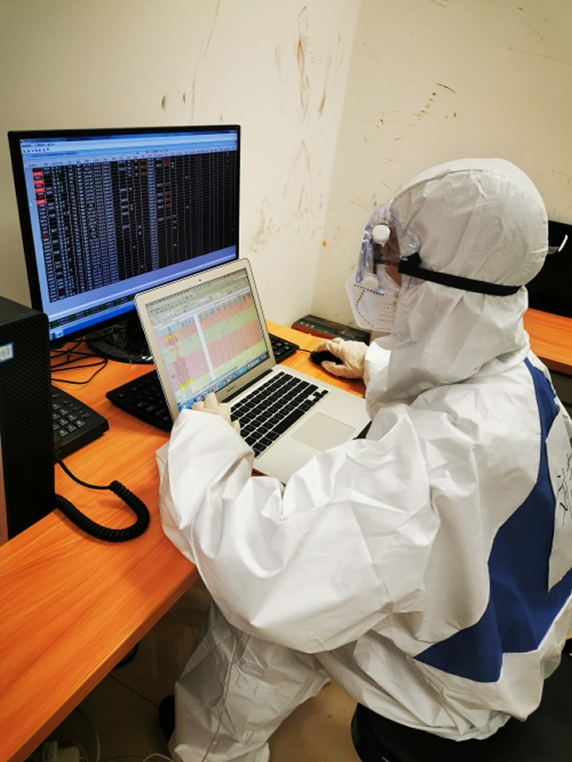 由于指揮部設(shè)在T3-D隔離區(qū)內(nèi),她們?cè)谏舷掳嗦吠局须y免會(huì)路過樓內(nèi)的隔離轉(zhuǎn)運(yùn)通道,因此做好自我防護(hù)也成為她們工作中一項(xiàng)重要的任務(wù)。突擊隊(duì)每個(gè)班次配備一套一次性防護(hù)服,為了避免頻繁穿脫造成的二次污染,十余個(gè)小時(shí)的工作期間,她們都盡量少喝水,實(shí)在覺得口干舌燥時(shí),只會(huì)稍微喝一點(diǎn)兒潤(rùn)潤(rùn)喉嚨,盡量等到交接班完畢離開T3-D之后再去衛(wèi)生間,這對(duì)于作為女生的她來說更加不便。