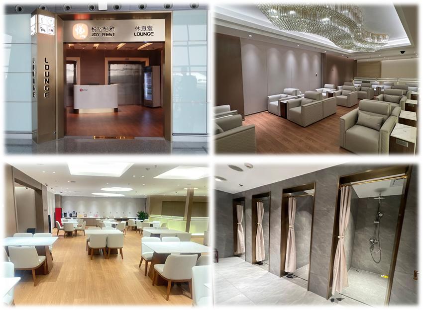 計時休息室共計7間客房、商務(wù)區(qū)設(shè)有29個客位、臨時睡眠區(qū)設(shè)有47個躺椅及用餐區(qū)域設(shè)有56個座椅等,高峰期可以保障接待184名旅客。休息室以空間重構(gòu)為基礎(chǔ)、功能升級為核心、服務(wù)優(yōu)化為延伸,通過智能化科技與人性化設(shè)計的完美融合,在空間規(guī)劃和功能布局上實現(xiàn)有機結(jié)合,為中外旅客打造舒適的候機體驗。采用流線型門頭與暖色調(diào)燈光,融入現(xiàn)代元素與機場特色,營造出兼具現(xiàn)代感與溫馨氛圍的候機空間。通過空間的合理布局,使這道與旅客接觸的首道服務(wù)窗口實現(xiàn)快速接待功能,顯著提升旅客接待服務(wù)效率。以暖色調(diào)墻面勾勒溫馨基調(diào),搭配木地板的溫潤質(zhì)感,打破傳統(tǒng)酒店的冷硬感。從踏入大門的第一刻起,就為旅客卸下奔波疲憊,營造“歸家般的松弛感”。休息室內(nèi)采用碧波綠的全新沙發(fā)及躺椅,從柔軟面料到搭配可躺臥功能,都為旅客帶來如沐春風之感,提供了極致舒適的休憩體驗。商務(wù)區(qū)沙發(fā)組合與智能充電茶幾,配備高速無線網(wǎng)絡(luò)和多接口充電站隱入桌面,讓商務(wù)洽談與休閑社交無縫切換,大大提升旅客的停留舒適度,滿足旅客對移動互聯(lián)的需求。