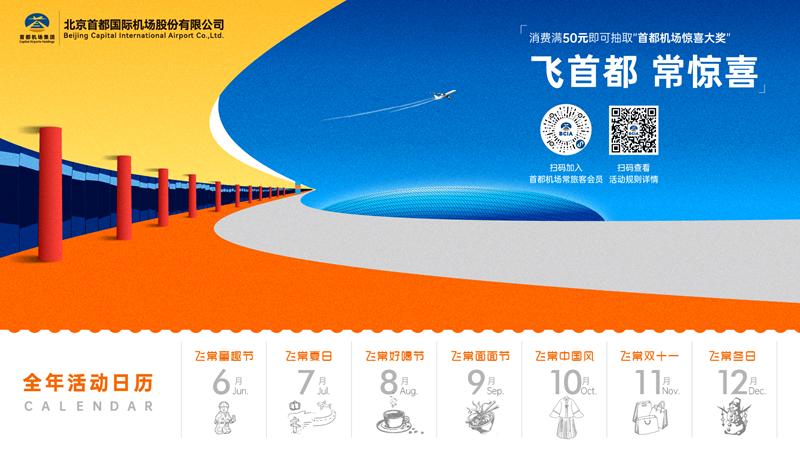 “飛首都·常驚喜”是首都機(jī)場(chǎng)貫穿全年的營(yíng)銷主題,推出營(yíng)銷品牌,全年宣傳物料、線上線下推廣均圍繞此主題展開,確保品牌認(rèn)知連貫性。在該營(yíng)銷主題下,首都機(jī)場(chǎng)結(jié)合不同節(jié)日、季節(jié)和旅客需求,推出豐富多彩的月度活動(dòng)。月度活動(dòng)改變以往機(jī)場(chǎng)全場(chǎng)發(fā)券的形式,改為以商戶自主優(yōu)惠為主,機(jī)場(chǎng)定向發(fā)券為輔,旨在用更少的成本撬動(dòng)更大的營(yíng)銷效果。