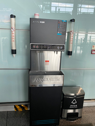 前往登機(jī)口的沿途衛(wèi)生間旁設(shè)有冷熱溫控飲水機(jī),可提供常溫水、冷水和熱水三種飲用水,并配有一次性紙杯。使用熱水時(shí),先按童鎖鍵,再按熱水鍵出水,松手停止出水;使用常溫水和冷水時(shí),先按常溫水或者冷水鍵出水,松手停止出水。