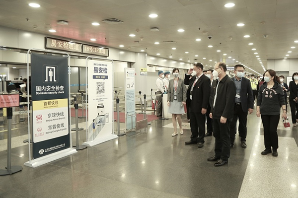 4月27日,公司總經理韓志亮、副總經理趙瑩帶隊赴首都機場T2“首都快線”現(xiàn)場踏勘。公司領導一行先后前往海航“京瓊快線”和川航“京蓉快線”值機柜臺、安檢主現(xiàn)場,實地查看了快線產品上線情況。公司領導強調,要與相關航空公司加強合作,確保旅客權益落地,提振首都航空市場,共塑“首都快線”品牌。